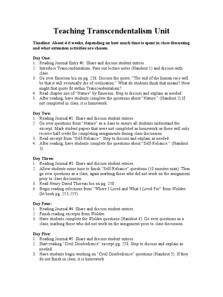 Teaching Transcendentalism Unit Pdf Henry David Thoreau Ralph Waldo Emerson